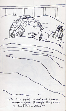 12/2/95: I'm lying in bed and I hear someone going through the knives in the kitchen drawer.