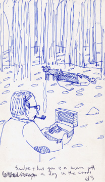 6/3/95: Sartre & his gun & a man with a dog in the woods.