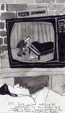 7/27/95: Lying in bed, watching Ed Sullivan on TV, Mia Farrow lying under a piano, hearing Herb Albert sing a rhythm and blues song (not by the Beatles).