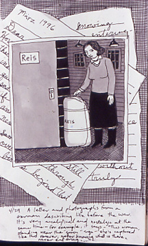 4/29/96: A letter and photographs from a German describing life before the war. It's very analytical and nostalgic at the same time -- for example, it says, "This woman, standing near the 'grain' sign -- she's captured like that forever, never knowing what is there, never entering."